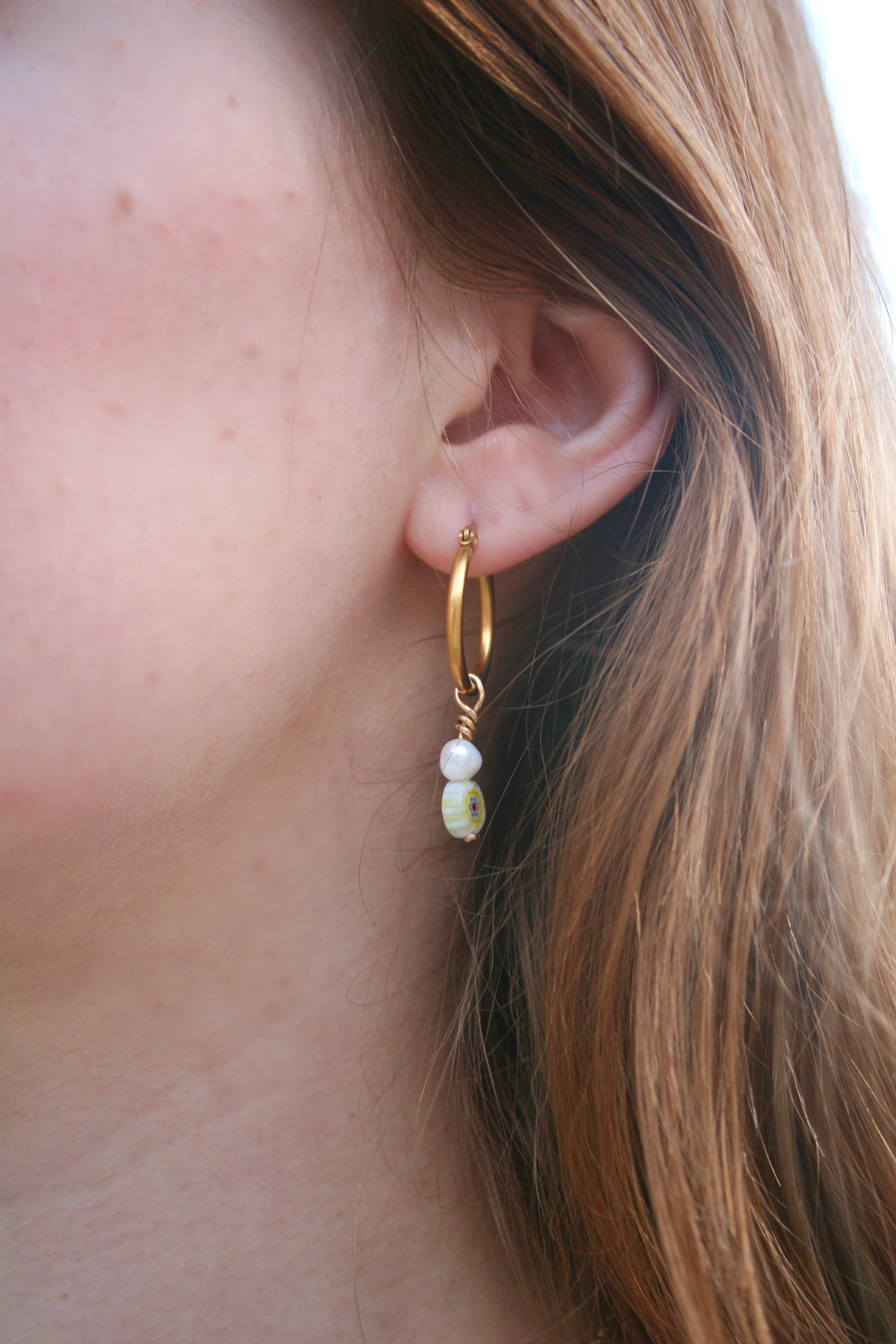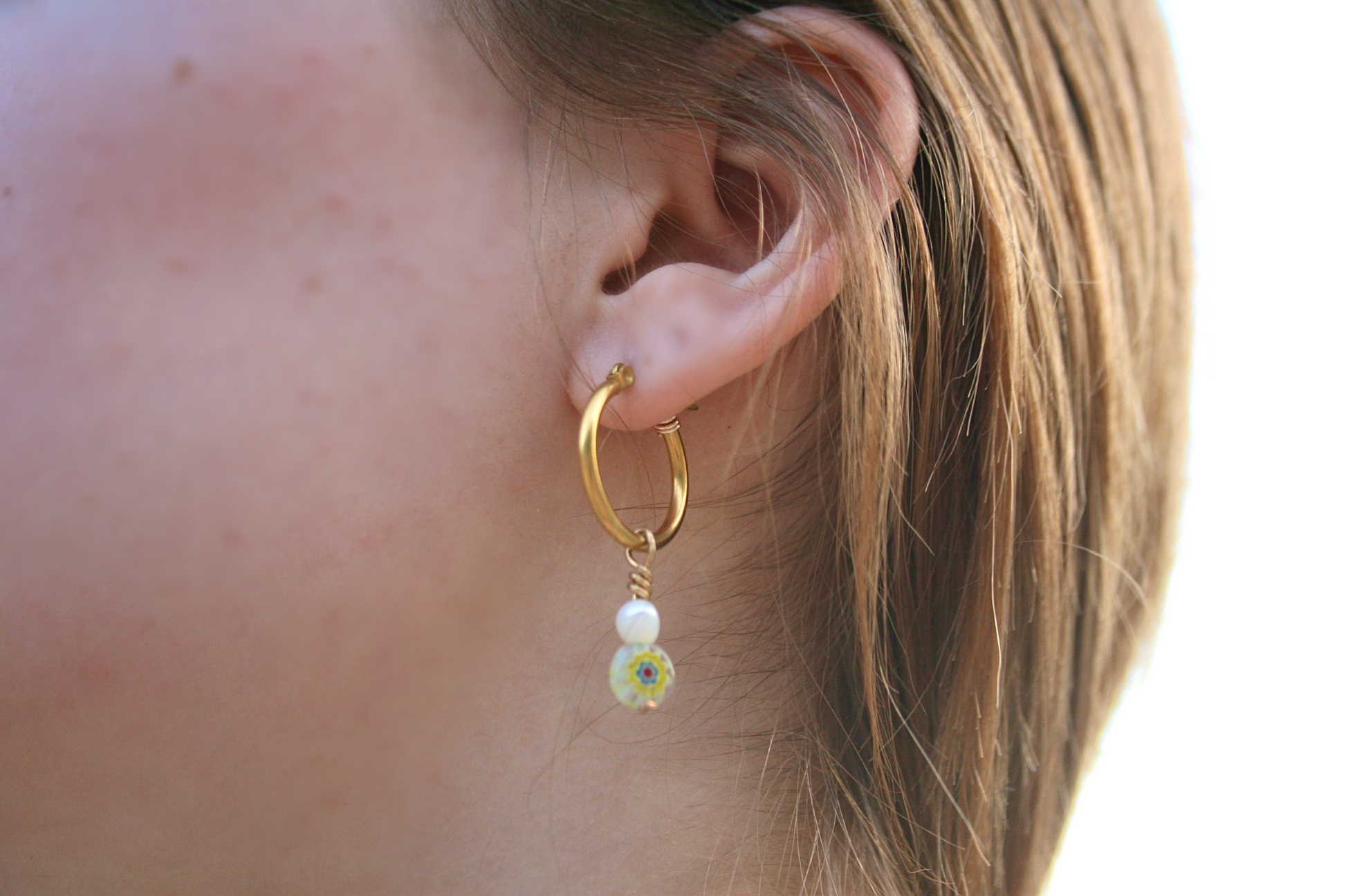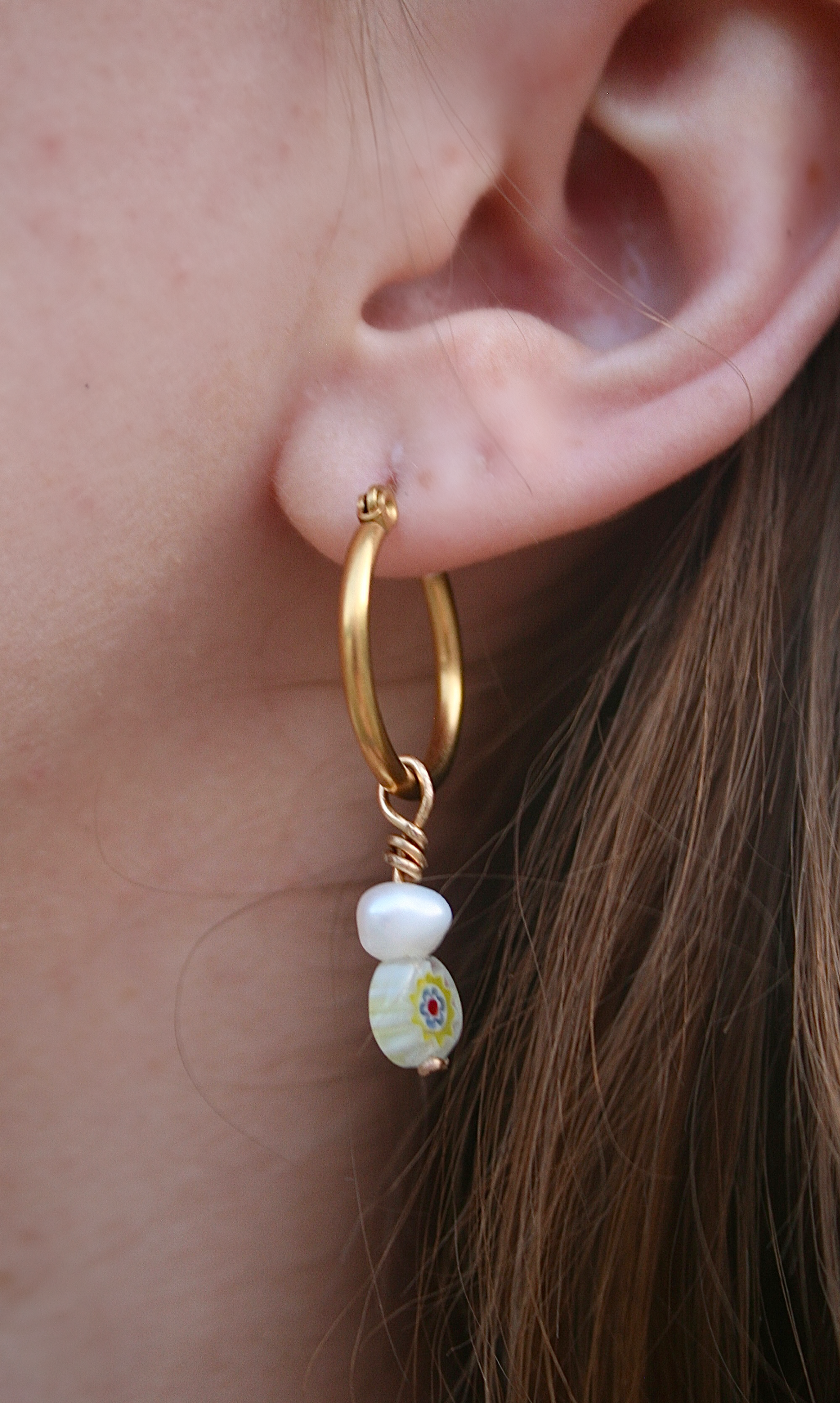 Elevate your style with our Millefiori Pearl Hoops. Adorned with stunning floral beads and beautiful freshwater pearls, these earrings are perfect for comfortable everyday wear. These hoops are also crafted with high quality sterling sliver. Make a statement and stand out with this must-have piece!