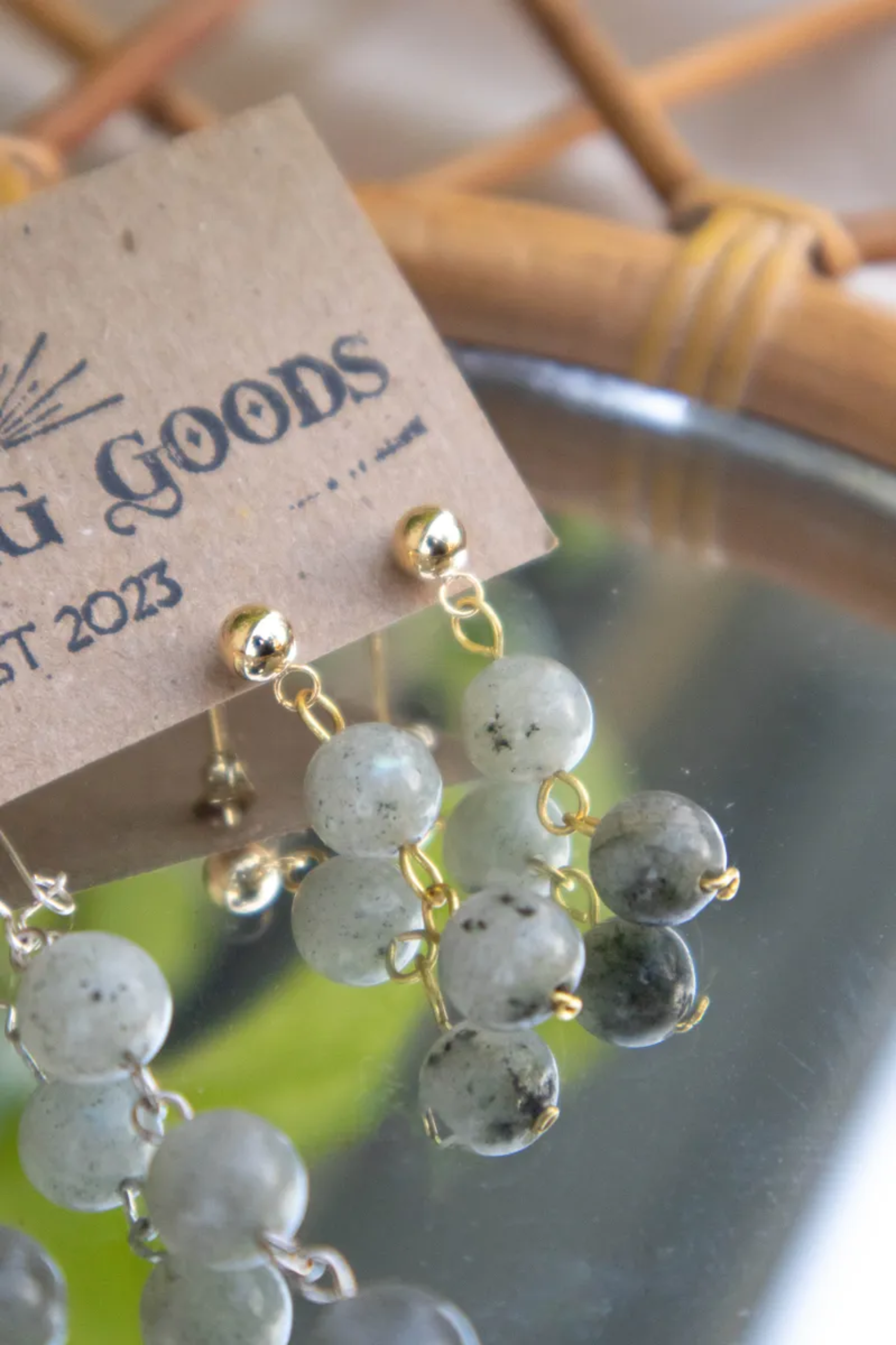 Elevate your style effortlessly with our stunning Labradorite Drop Dangle Earrings. Unique in style, these earrings are handmade with genuine high-quality labradorite crystal gemstones.