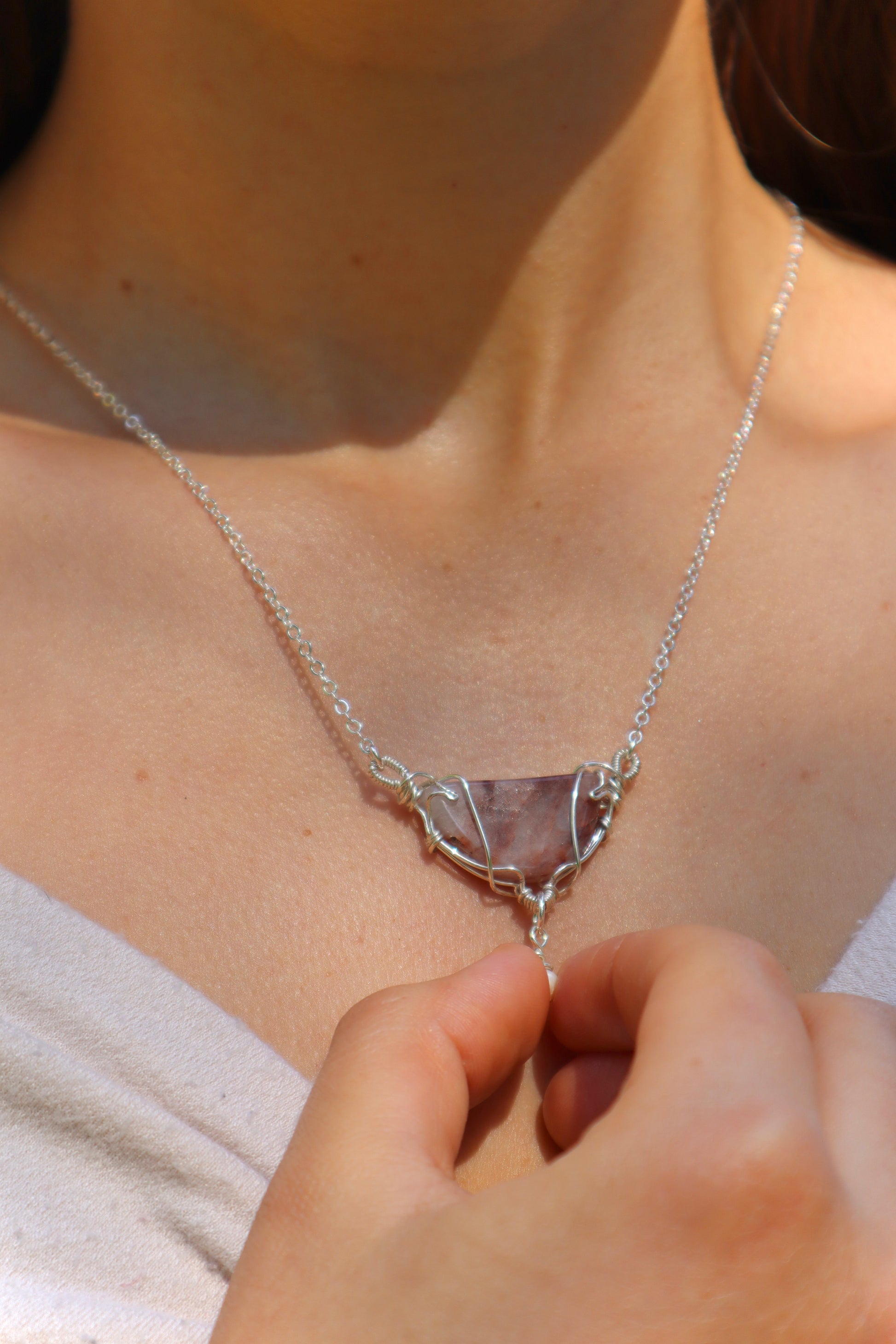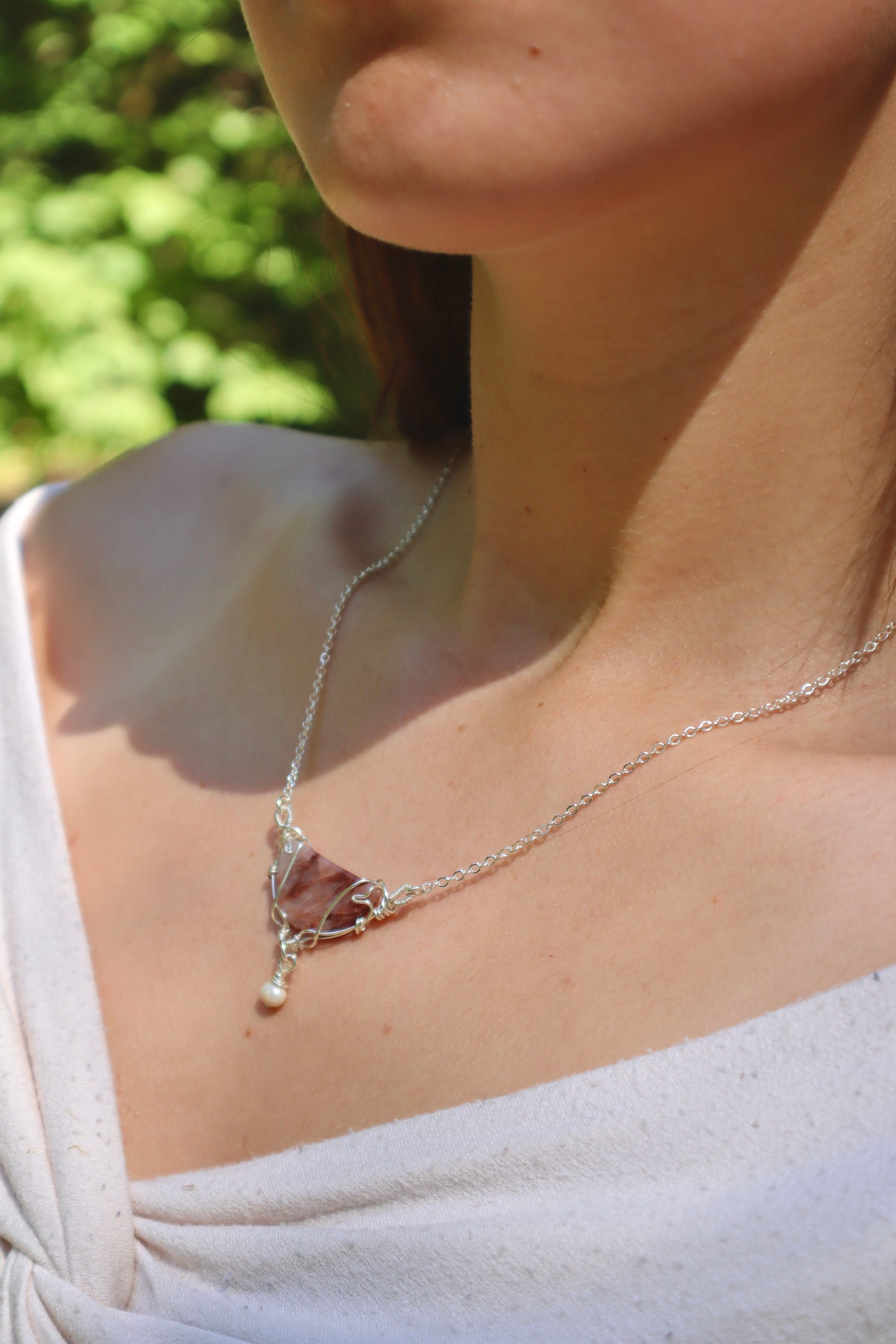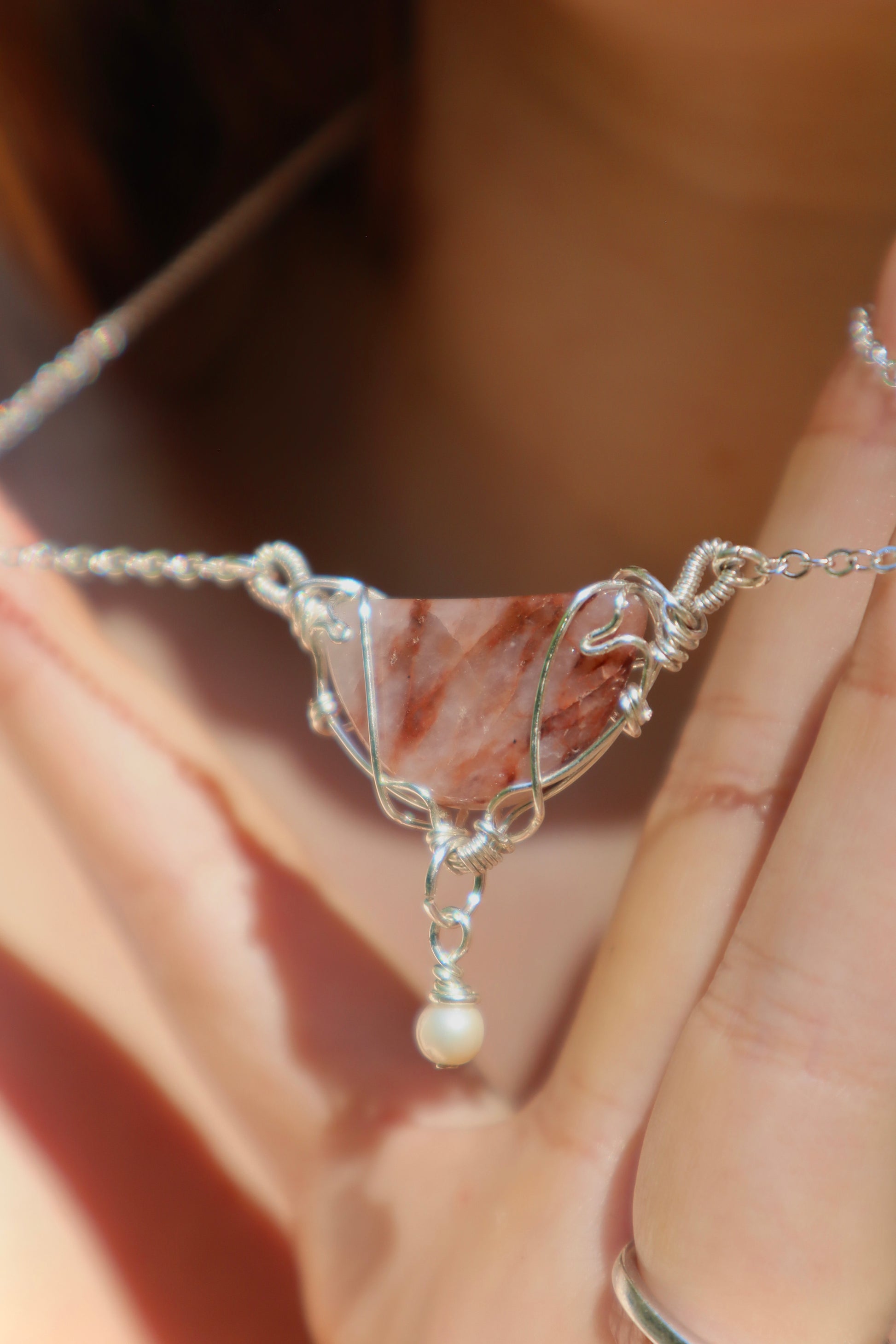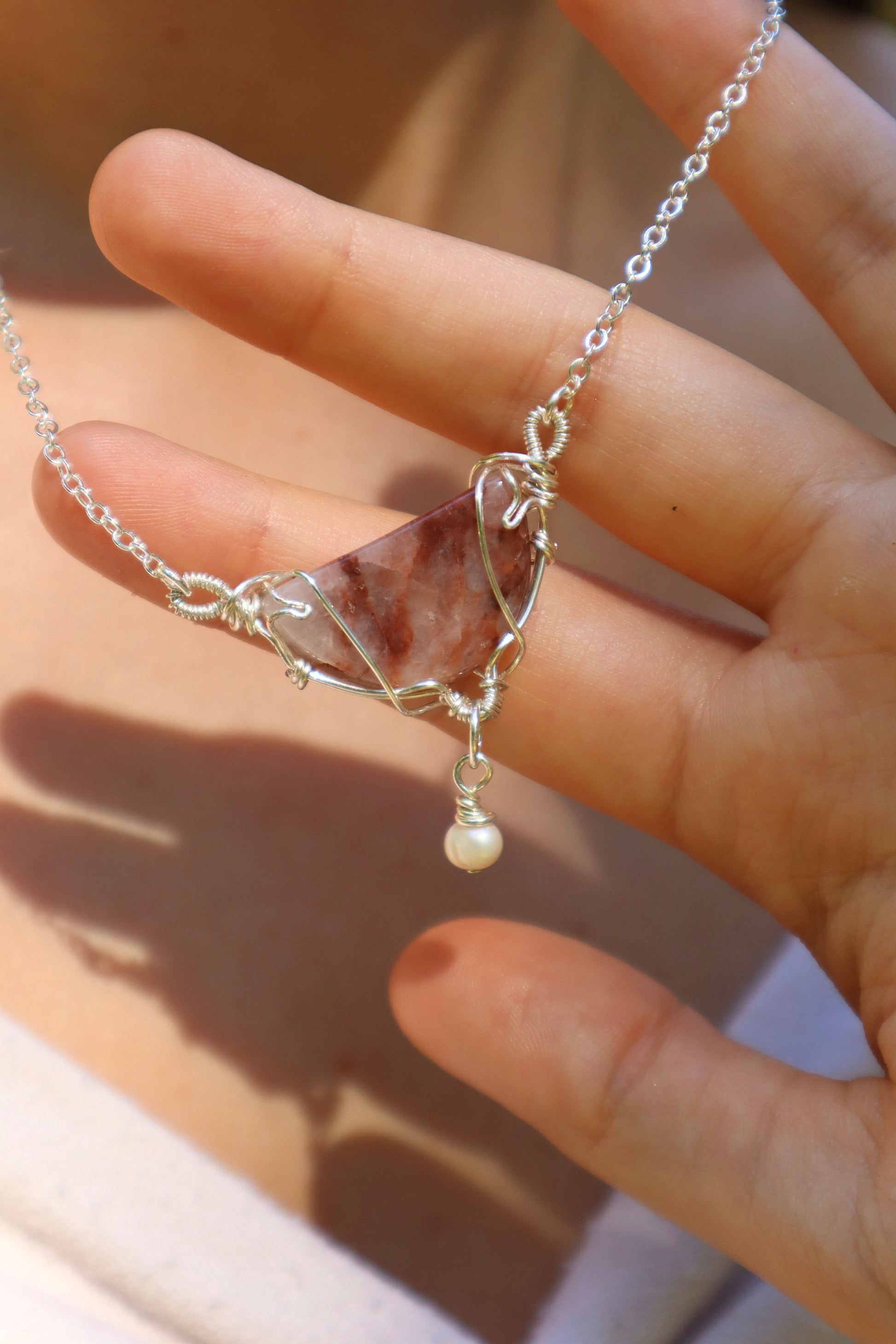 Experience the beauty and uniqueness of our Desert Bloom Agate Pearl Necklace! Made with a natural vibrant sliced agate and a freshwater pearl detail. Intricately wrapped in tarnish-resistant silver wire. The back features a stunning lotus flower wire wrap design. This necklace is made for comfortable wear and crafted for durability-attached to a shiny stainless steel chain.