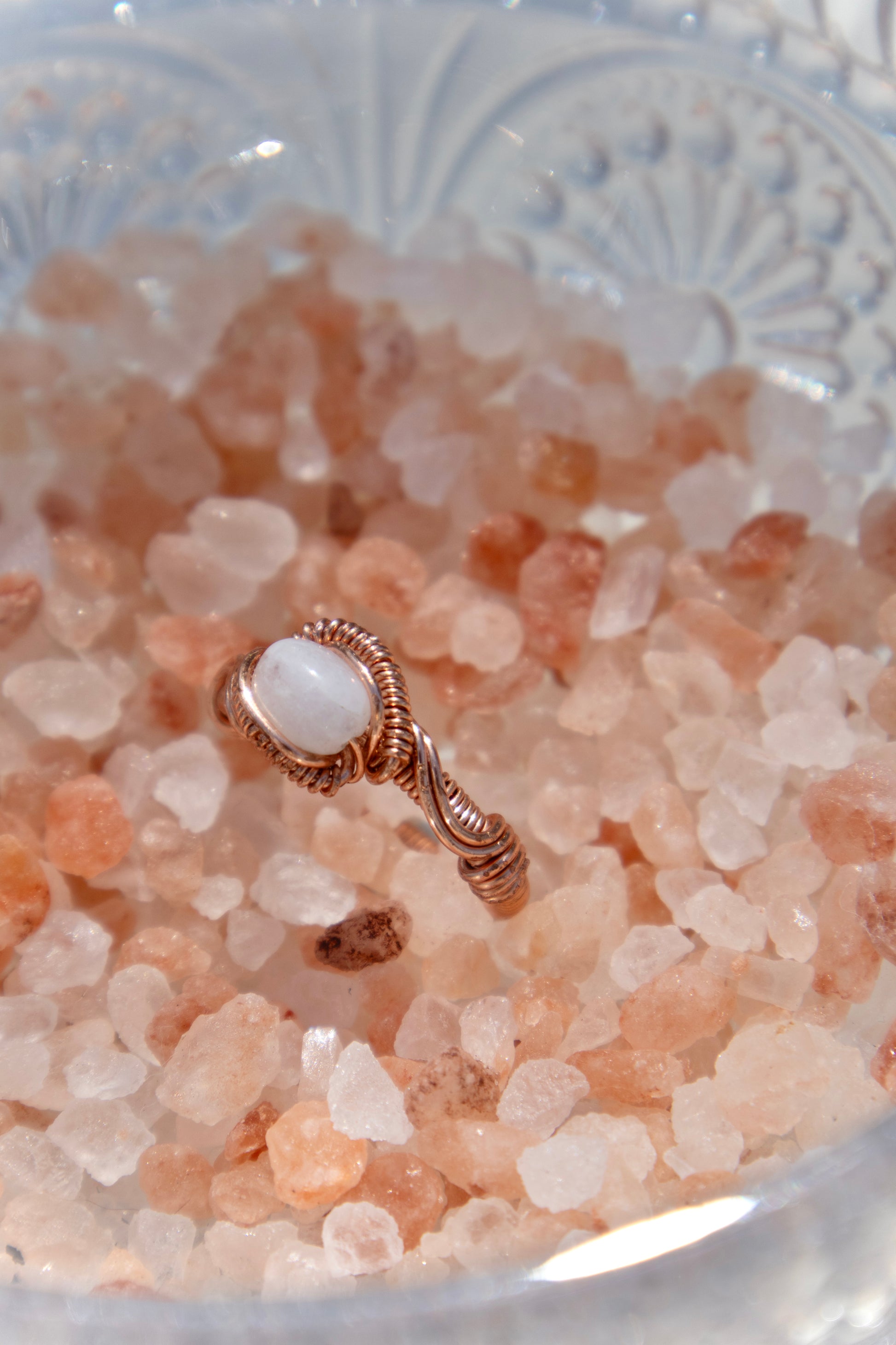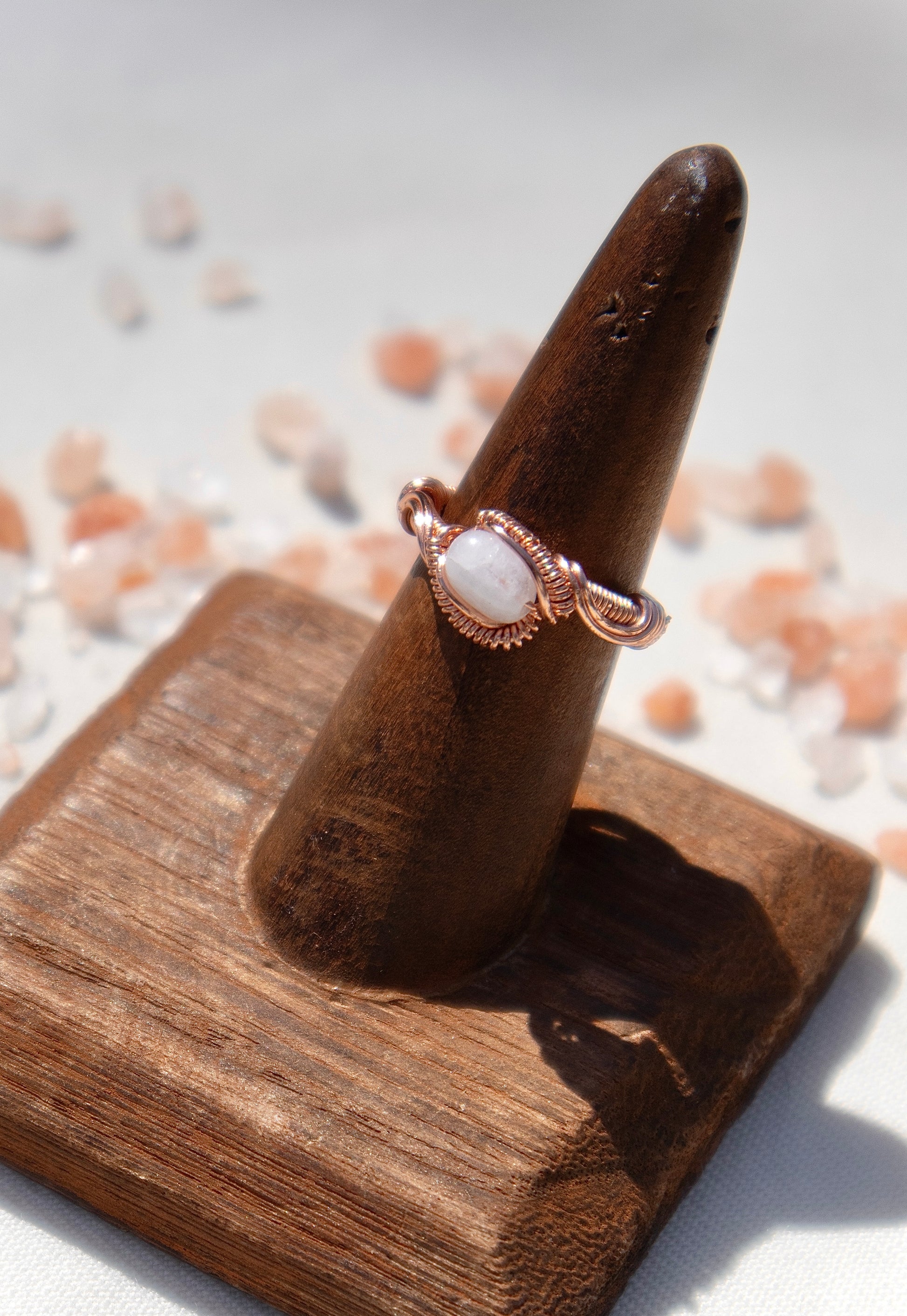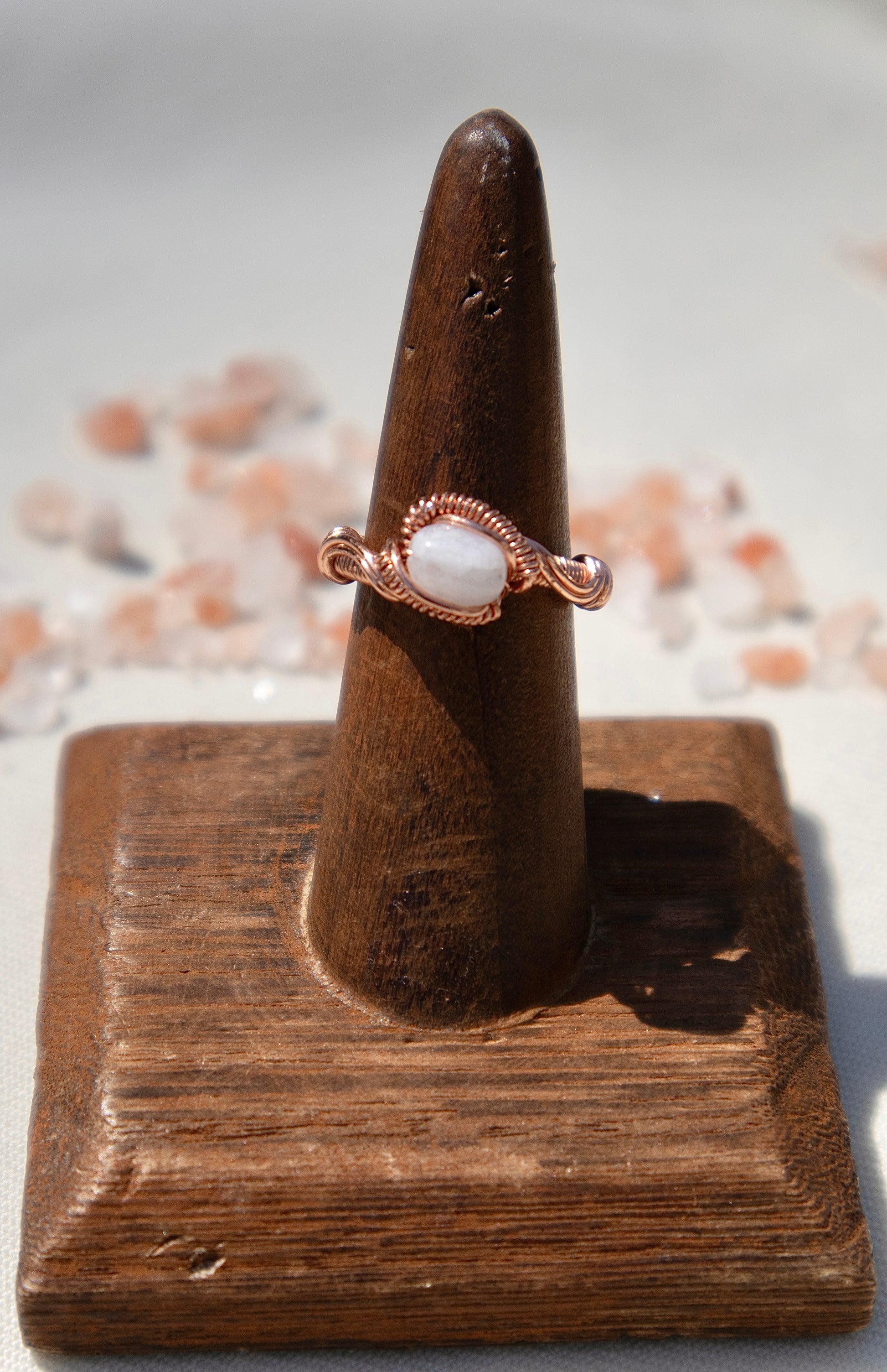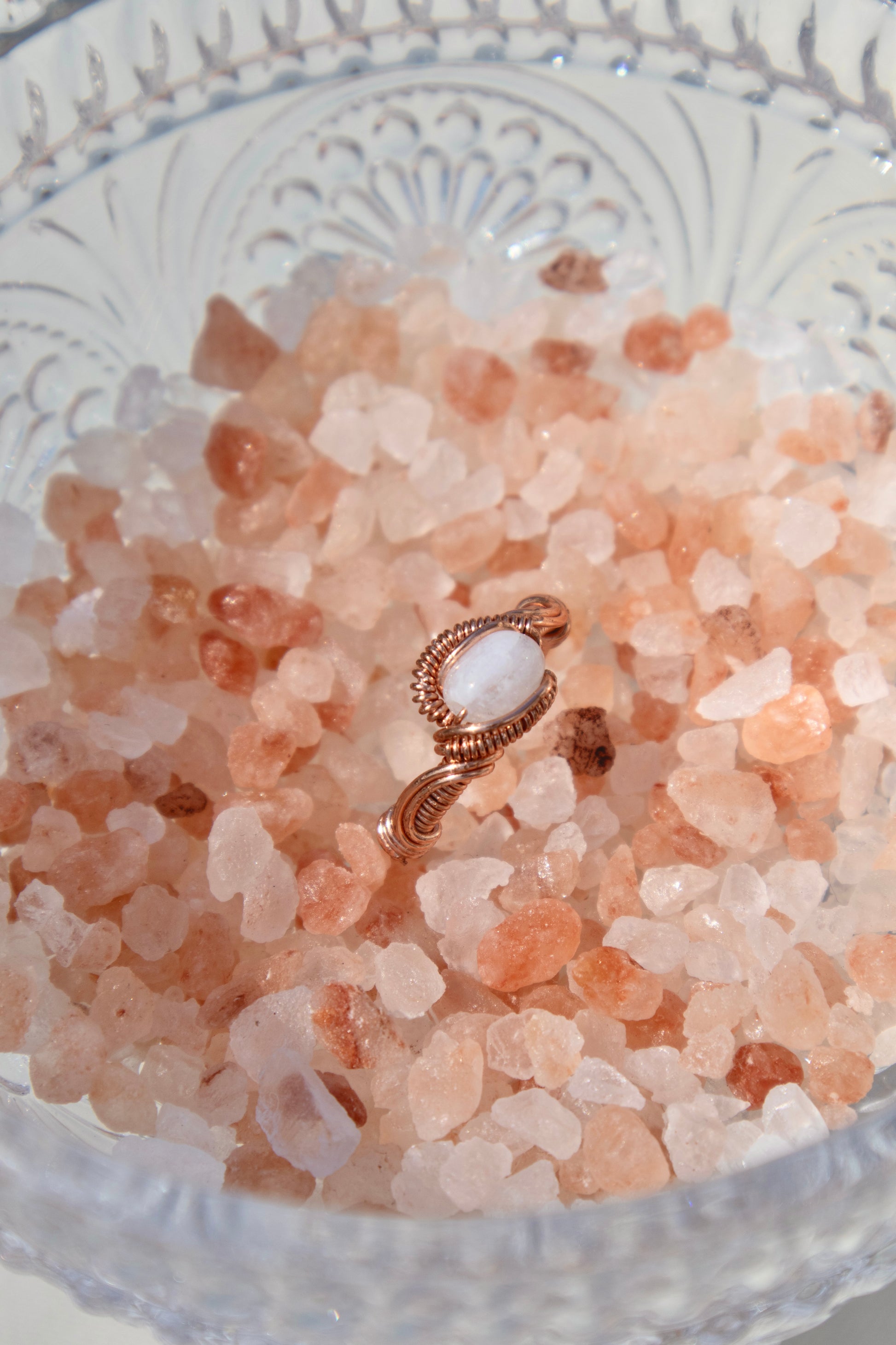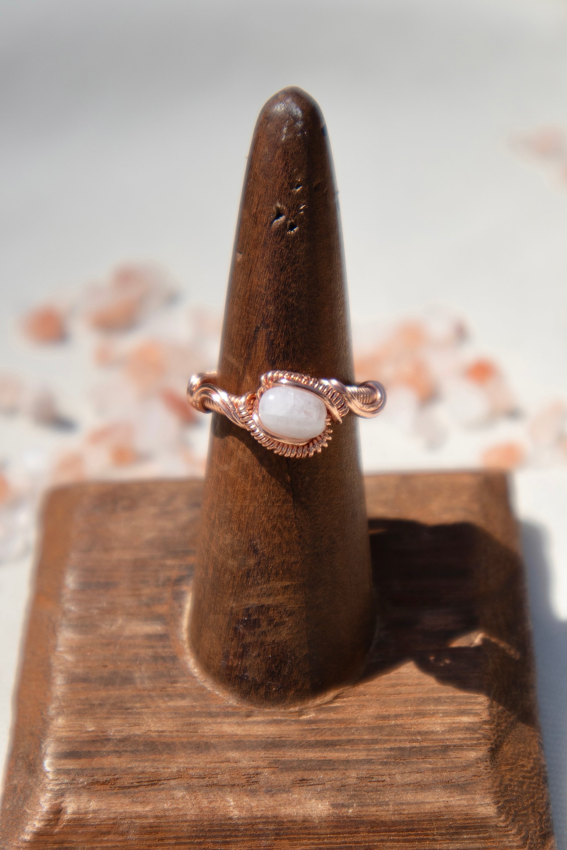 Introducing the mesmerizing beauty of our Iridescent Pearl Copper Intricate Wrapped Ring . Handcrafted with a uniquely shaped Pearl crystal, delicately wrapped in tarnish-resistant copper wire. This ring features a stunning rose gold accent that will maintain its color over time. Lightweight and comfortable this ring will add a touch of elegance to your everyday wear.