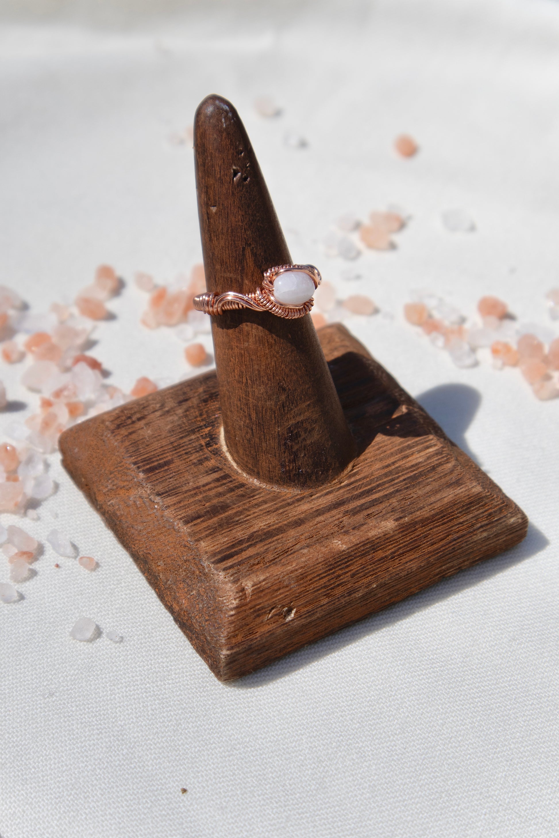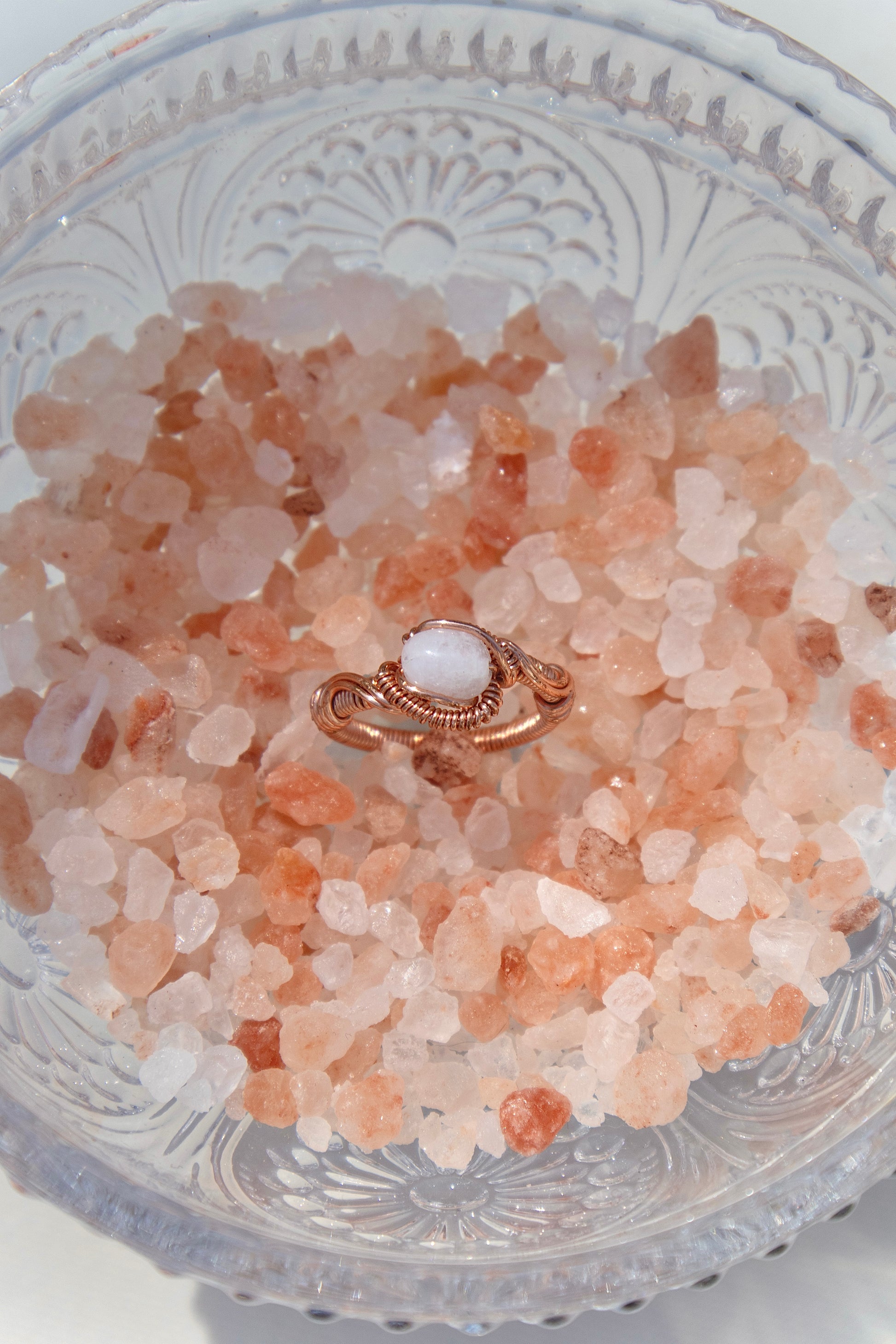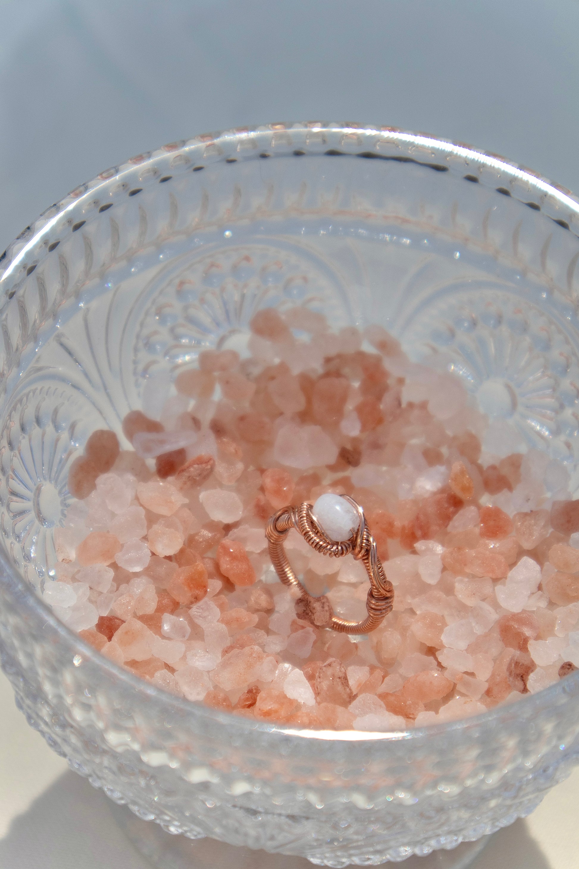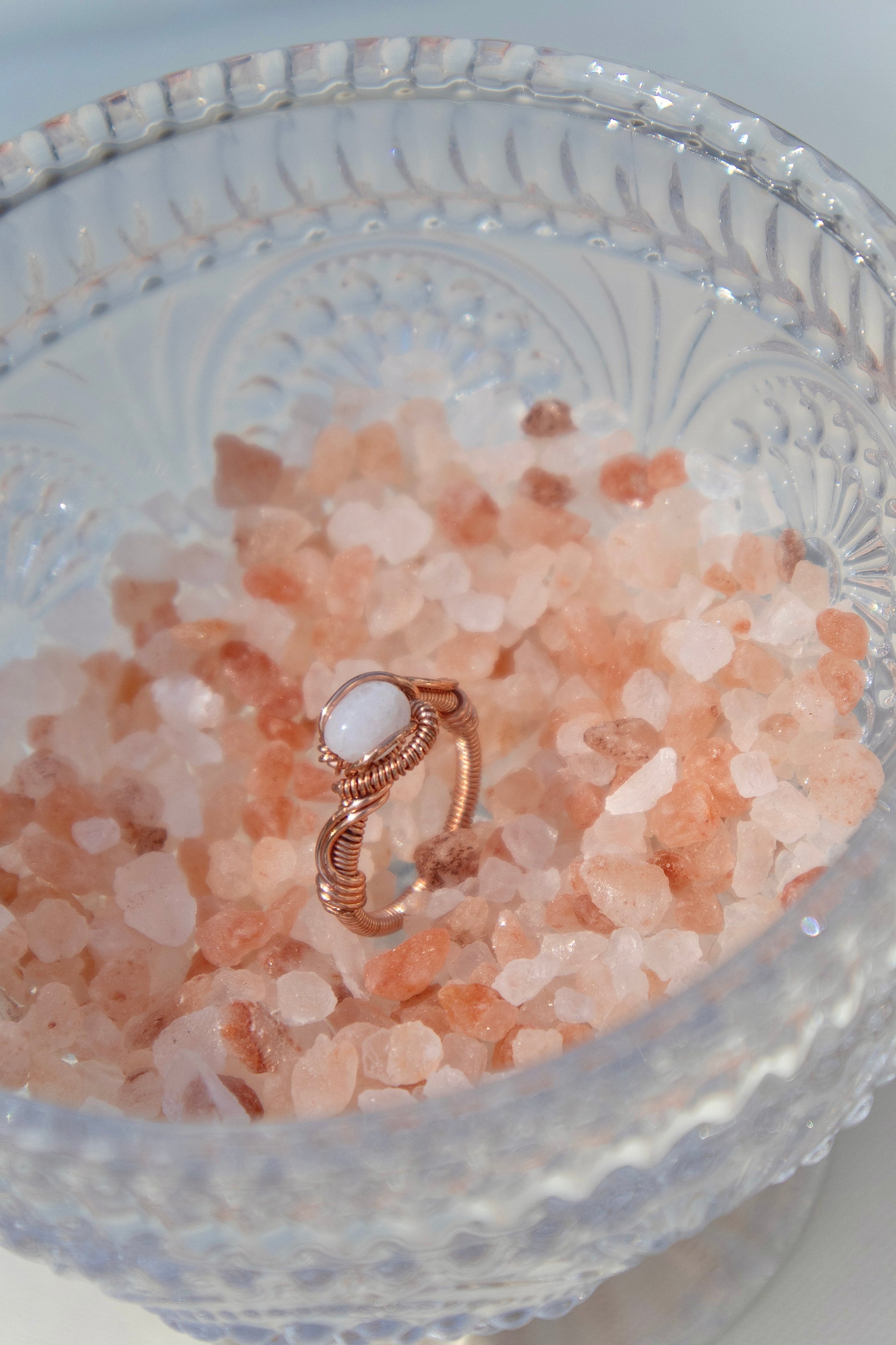 Introducing the mesmerizing beauty of our Iridescent Pearl Copper Intricate Wrapped Ring . Handcrafted with a uniquely shaped Pearl crystal, delicately wrapped in tarnish-resistant copper wire. This ring features a stunning rose gold accent that will maintain its color over time. Lightweight and comfortable this ring will add a touch of elegance to your everyday wear.