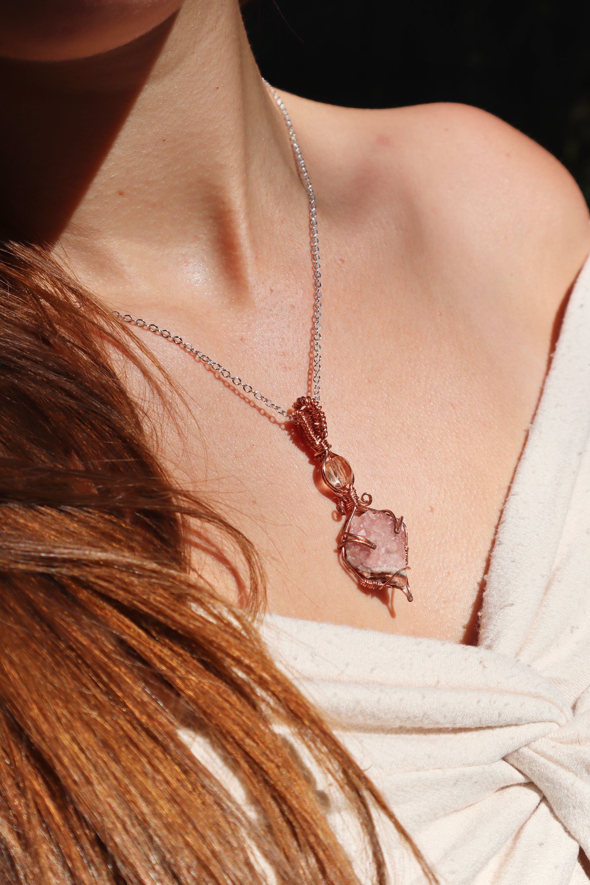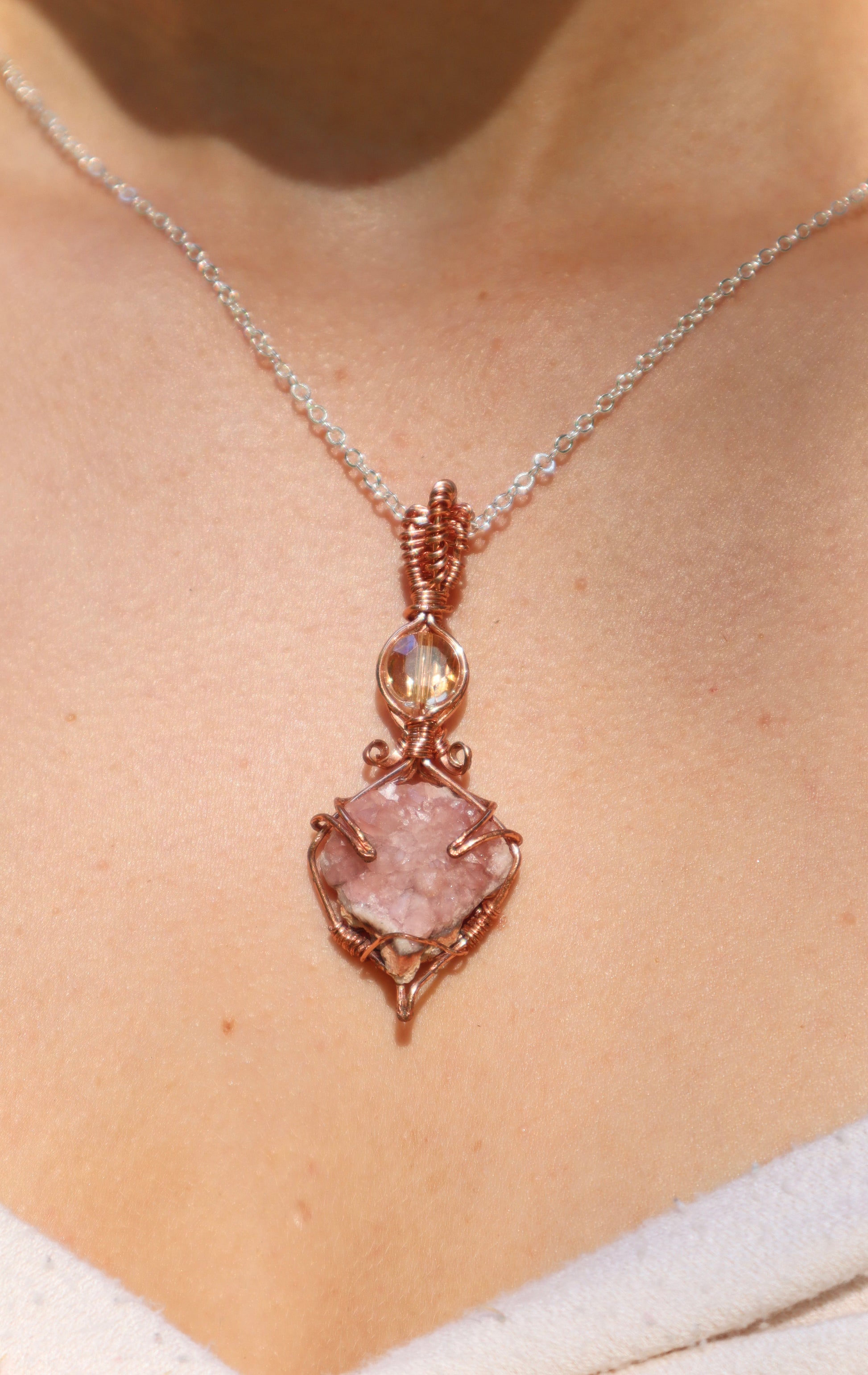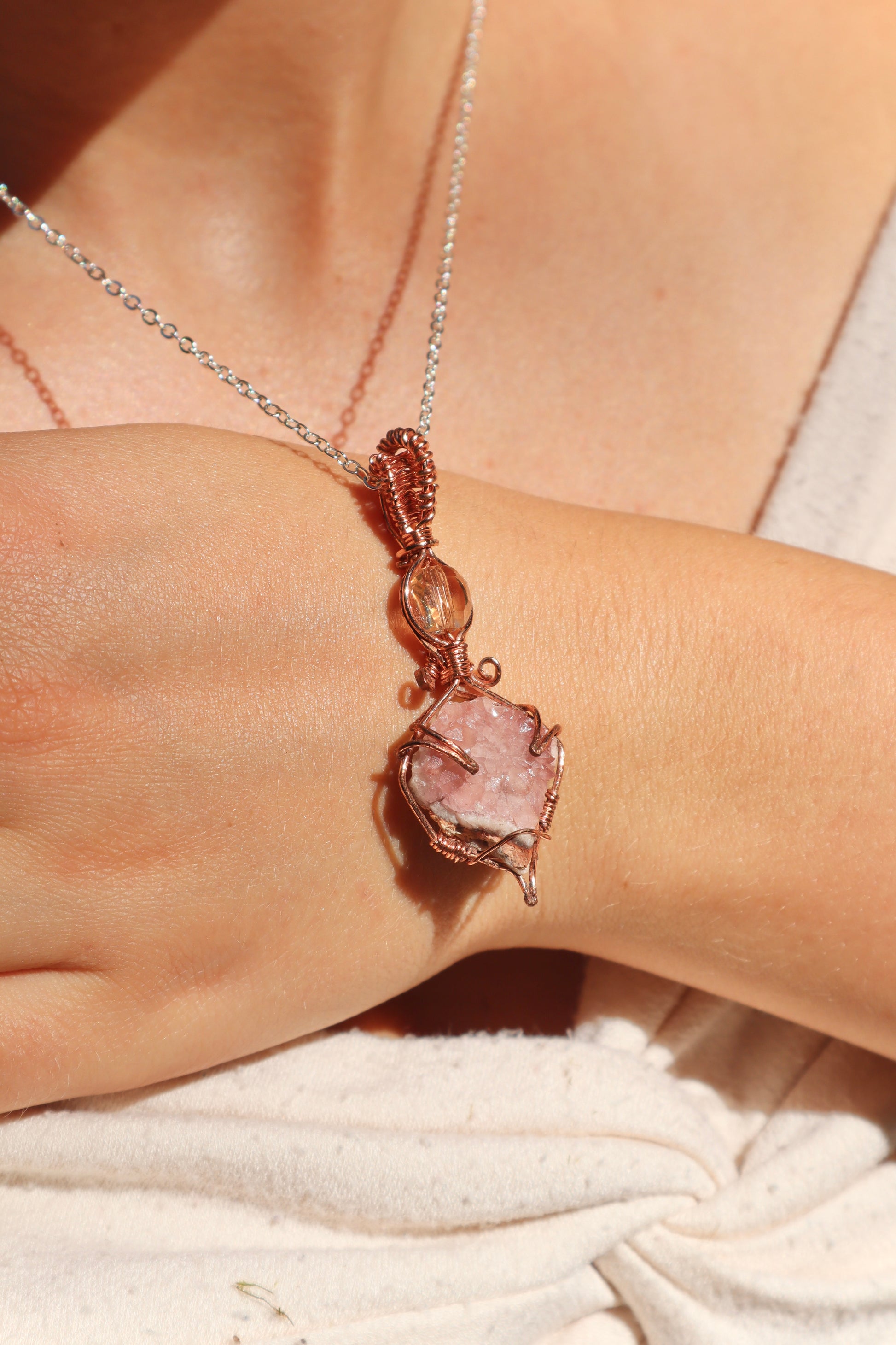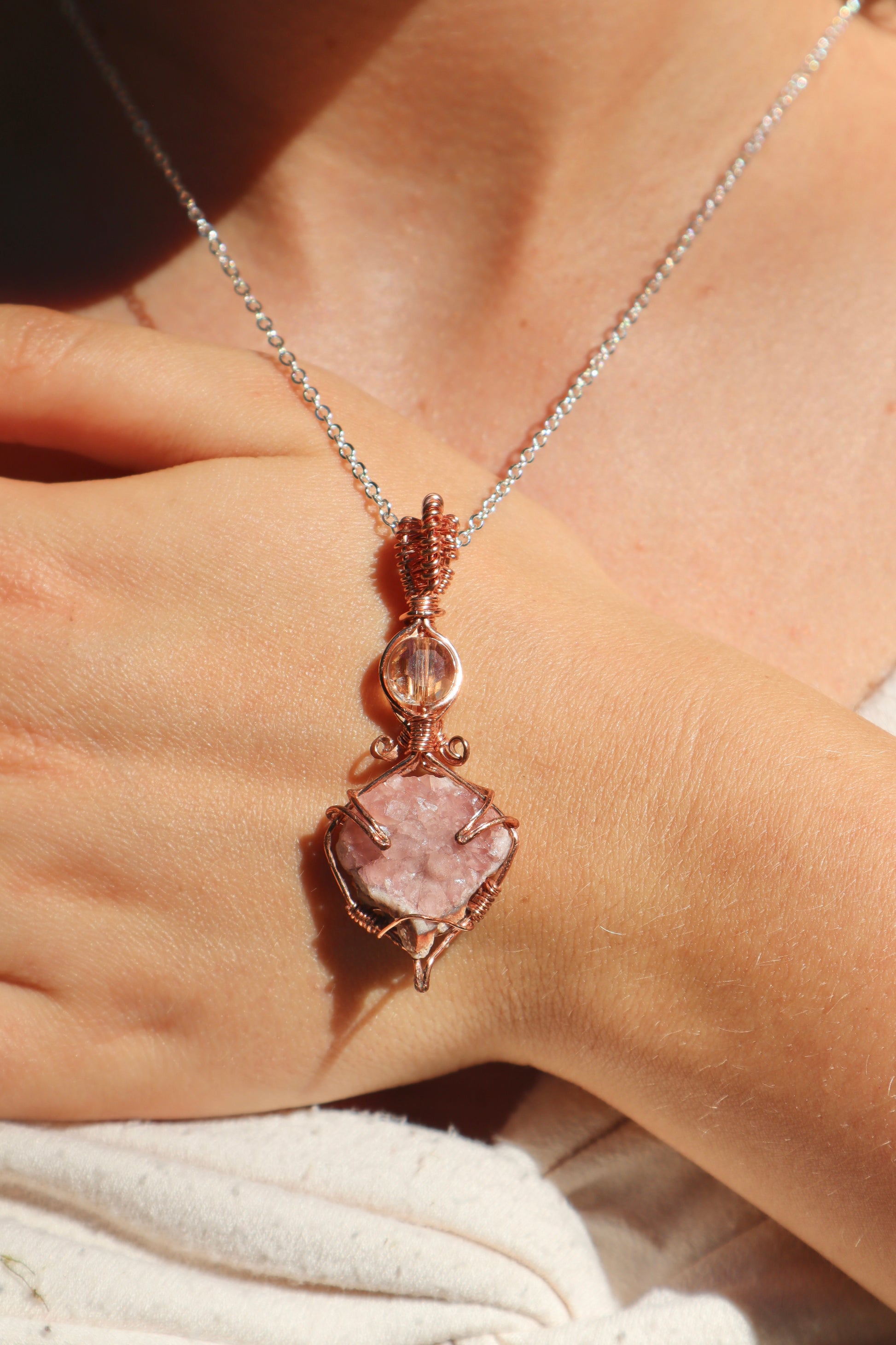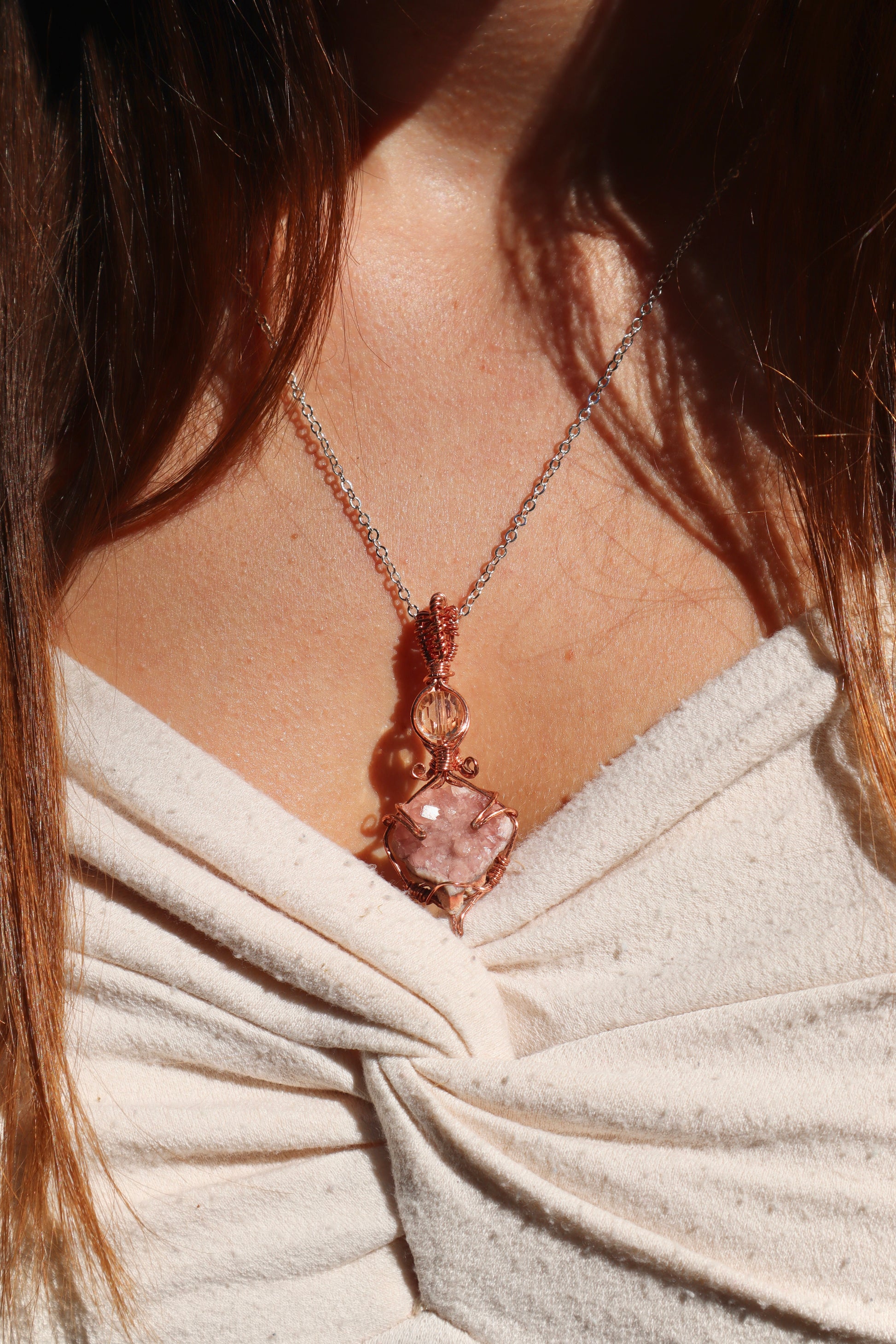 Add a touch of elegance to your jewelry collection with our Pink Amethyst Pendant. Crafted with elegance, this pendant is made with a genuine crystal, wrapped in tarnish resistant copper wire. Paired with a chain of your choice, this pendant radiates timeless beauty for everyday wear.