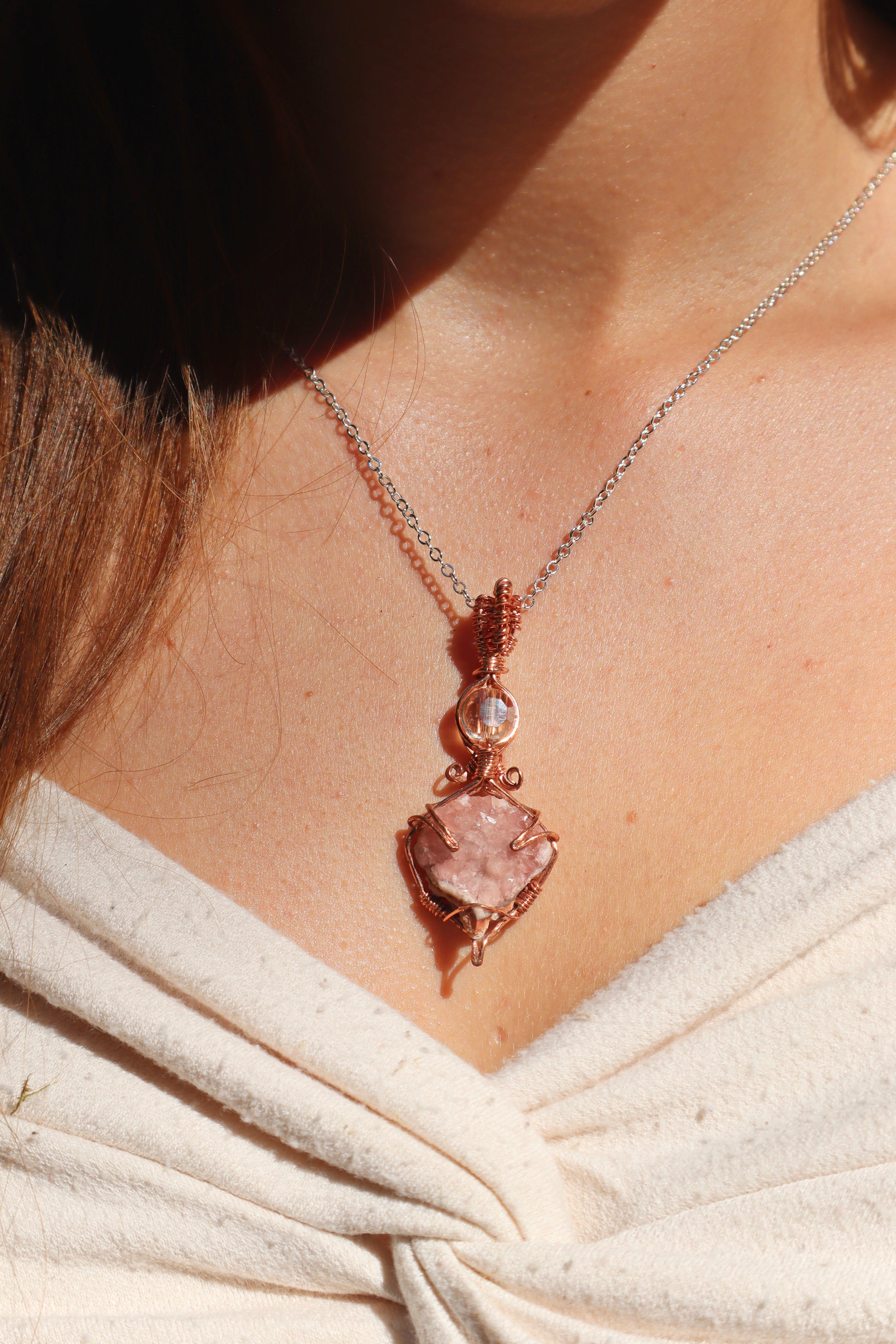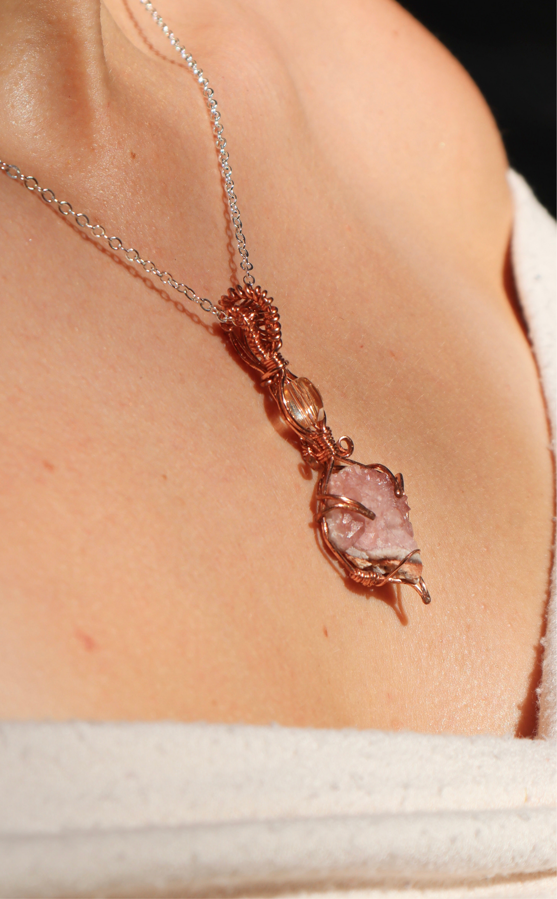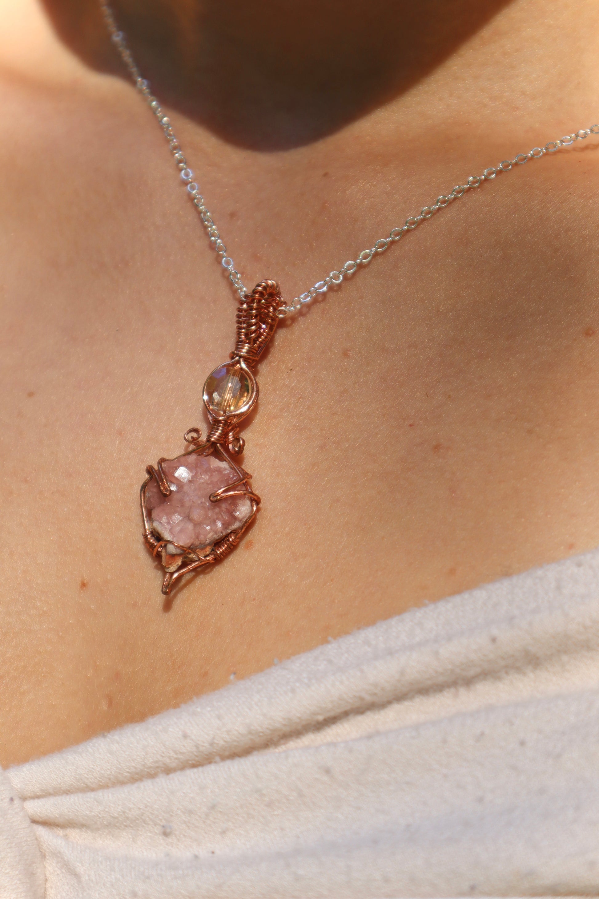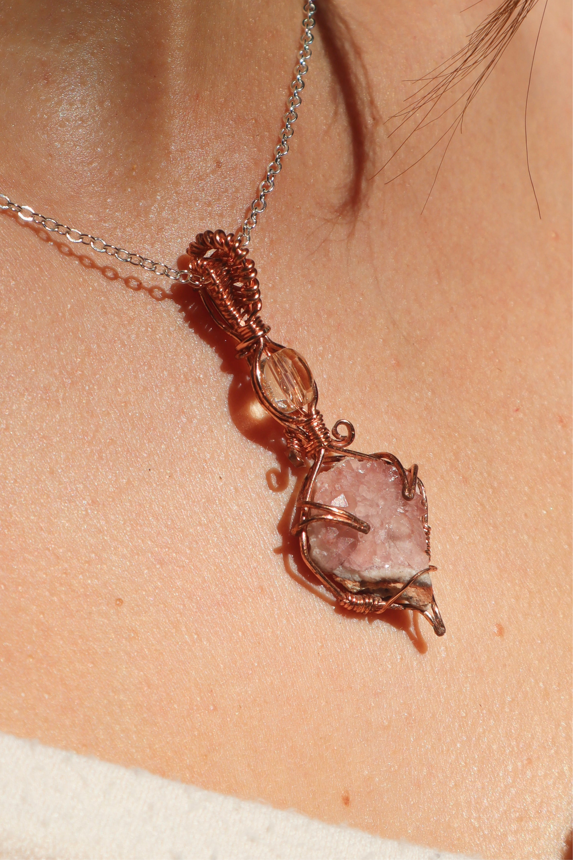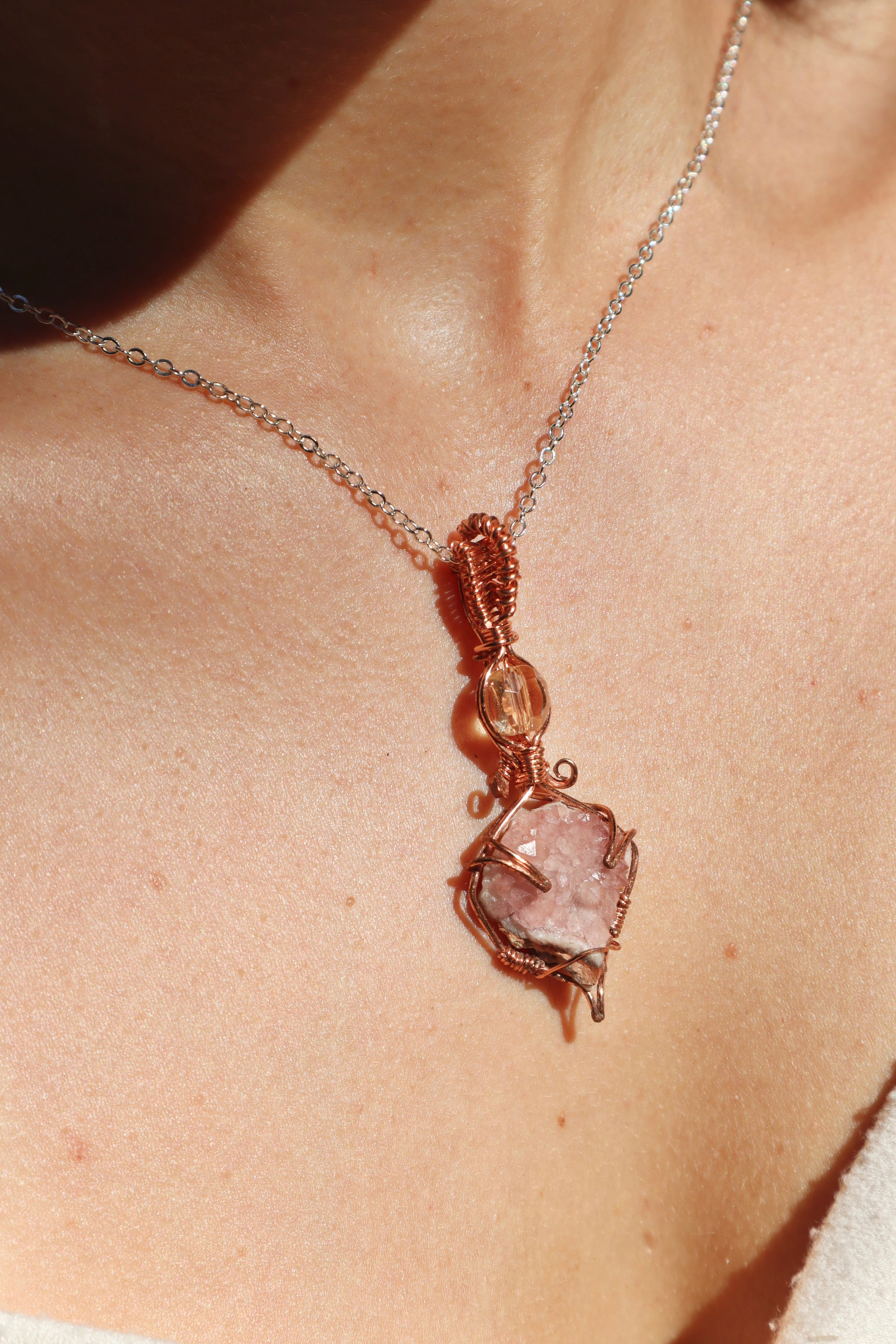 Add a touch of elegance to your jewelry collection with our Pink Amethyst Pendant. Crafted with elegance, this pendant is made with a genuine crystal, wrapped in tarnish resistant copper wire. Paired with a chain of your choice, this pendant radiates timeless beauty for everyday wear.