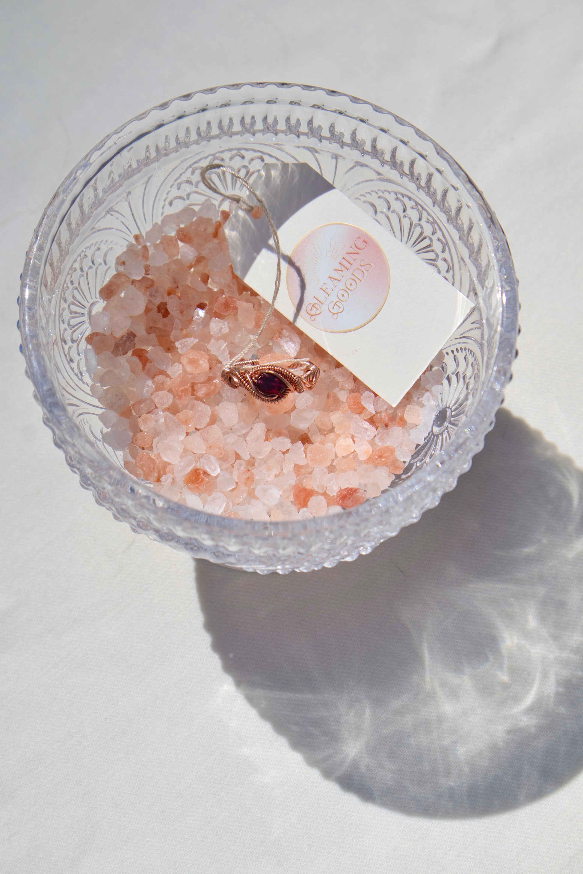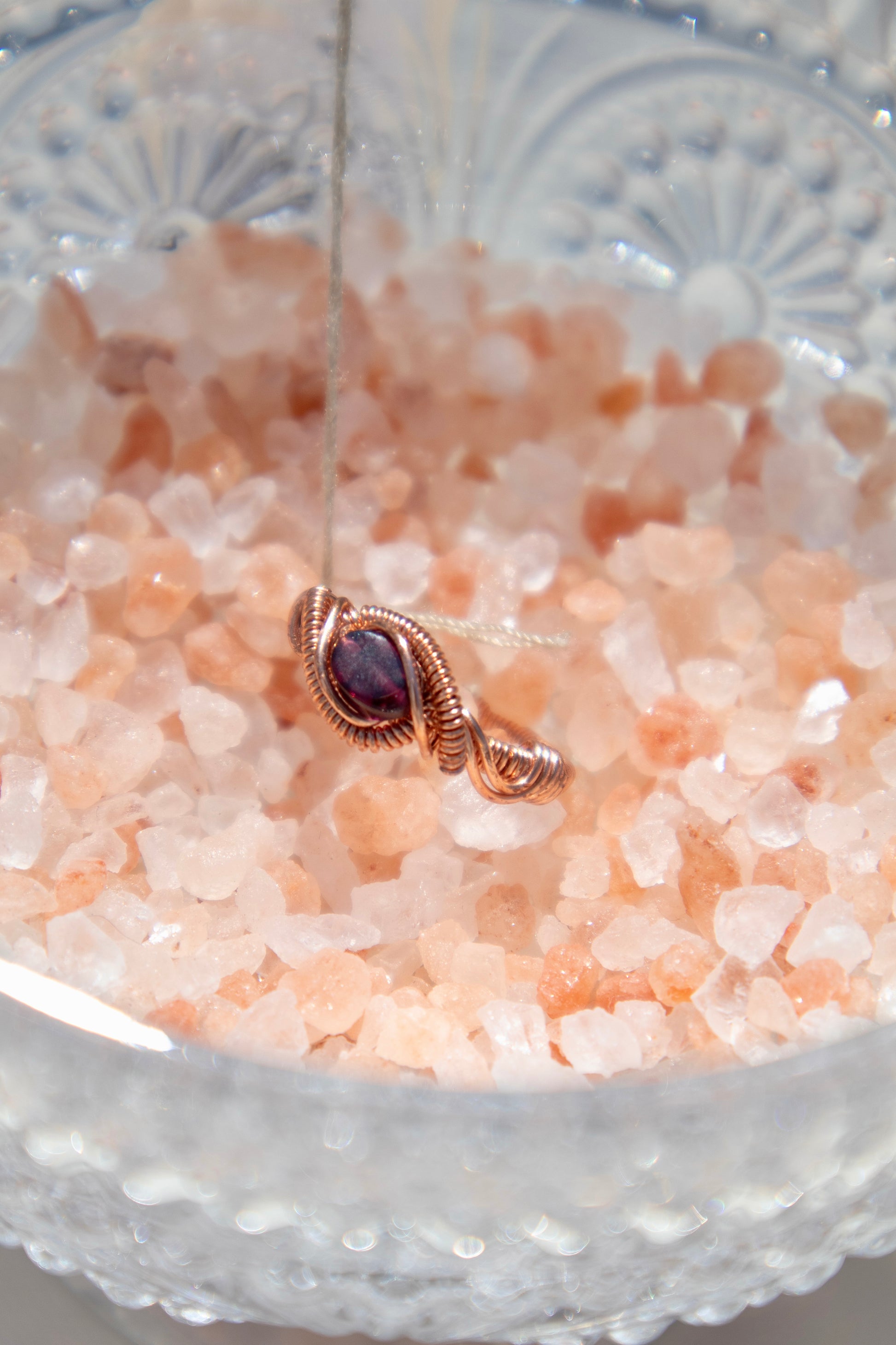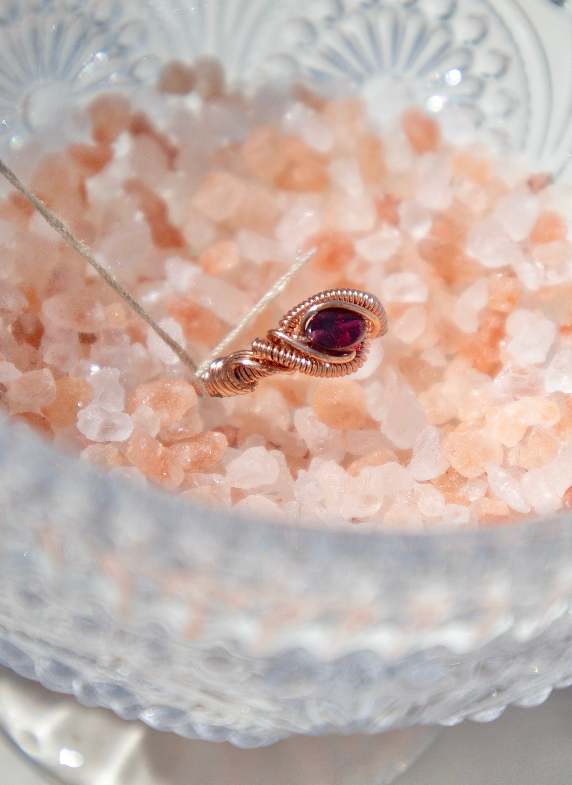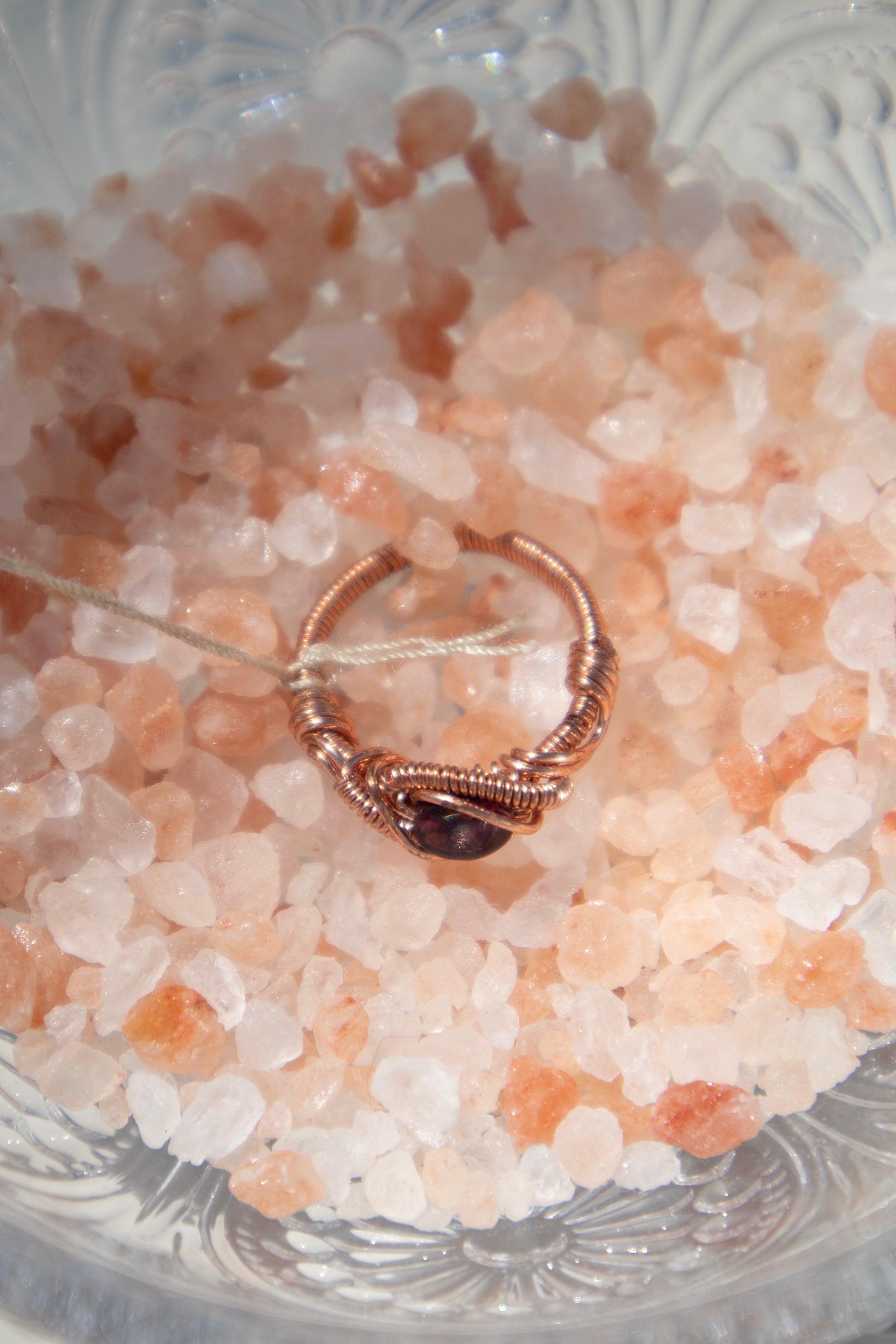 Introducing the mesmerizing beauty of our Red Garnet Intricate Ring. Handcrafted with genuine red garnet crystal, delicately wrapped in tarnish-resistant copper wire. This ring features a stunning rose gold accent that will maintain its color over time. Lightweight and comfortable this ring will add a touch of elegance to your everyday wear.