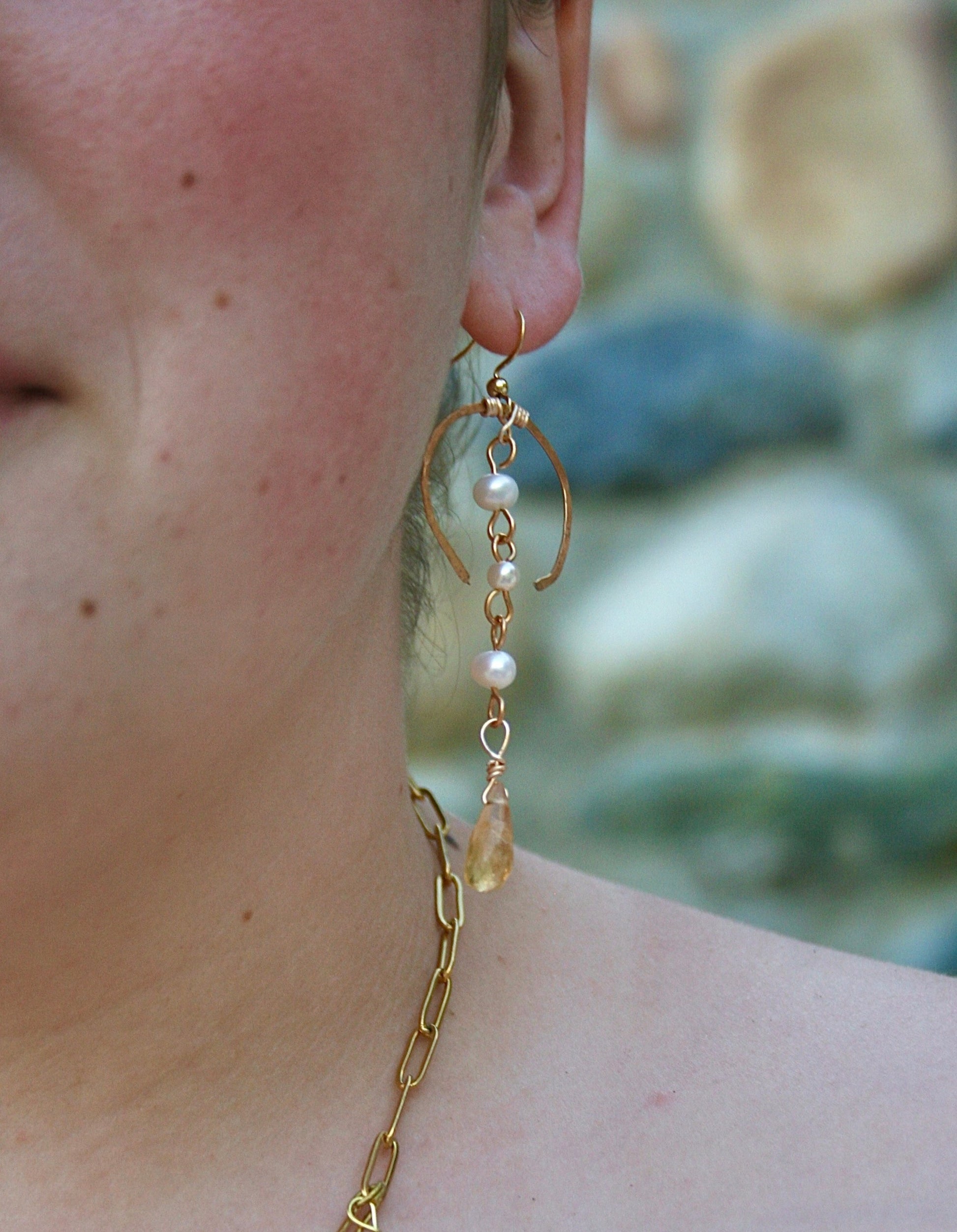 Elevate your style with our handmade Wishbone Citrine Gem Earrings. These boho-inspired earrings are perfect for making a statement through everyday wear.